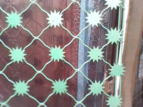 1、梅花刺片護欄網又名太陽花刺片隔離網,為太陽的后裔單層梅花刺片網,直徑不小于7.5cm,刺片厚1.5mm,采用Q235低碳鋼板沖壓成型。