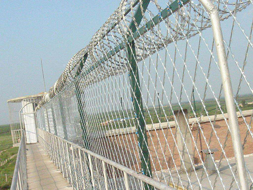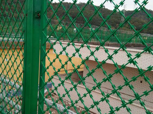 監獄刀刺隔離網又名刀片刺繩隔離網、刀刺防護網。監獄刀片隔離網是一種新型防護網。該產品具有嚇阻效果好.美觀.施工便利.經濟實用等優異特點。