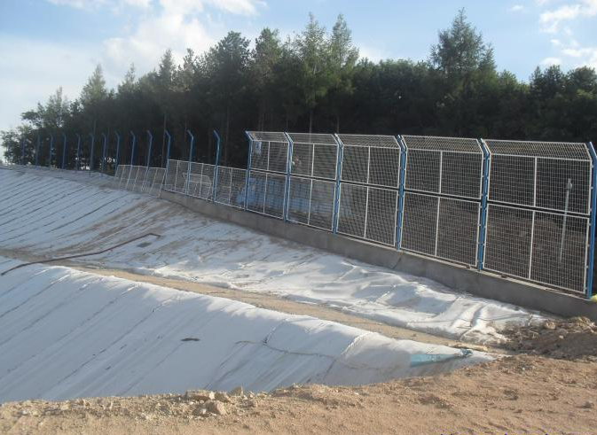 1.垃圾場防飛散網(wǎng)采用金屬網(wǎng)片與立柱連接。網(wǎng)片孔一般為50*150mm,當垃圾場經(jīng)過氣流吹起后,氣流會通過網(wǎng)孔通過,而會將垃圾留在網(wǎng)片上,如果是磚墻,會造成垃圾向上飛躍出圍墻,從而對周圍環(huán)境造成污染。
