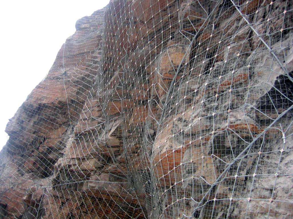 主動邊坡防護網(wǎng)又叫主動防護網(wǎng),主動防護網(wǎng)系統(tǒng)是以鋼絲繩網(wǎng)為主的各類柔性網(wǎng)覆蓋包裹在所需防護斜坡或巖石上,以限制坡面巖石土體的風化剝落或破壞以及危巖崩塌(加固作用),或?qū)⒙涫刂朴谝欢ǚ秶鷥?nèi)運動(圍護作用)。