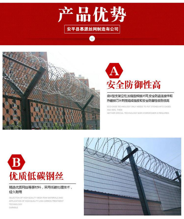安平縣慕源絲網制造有限公司位于中國*的“絲網之鄉”-河北安平。我公司專業從事監獄護欄網、水庫護欄網、保稅區護欄網、機場護欄網等產品的生產與銷售,產品遠銷十幾個國外和地區,其質量贏得了國內外客戶的好評。以下為慕源監獄、看守所隔離網(護欄網)部分案例。所有案列為真實有效案列。