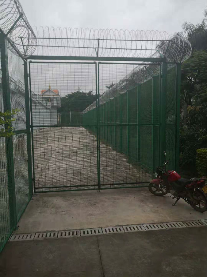 監獄外圍墻需要安裝一種防攀爬得圍欄,這種鐵絲網一般是直接安裝在地面上,高度可達四到五米高,頂部加上放上一圈又一圈的刺絲滾籠。部署上的這種護欄防護網*好采用密目防爬網,這種防爬網又叫358安全圍欄,它的網孔是極小的,人的手指都伸不進去,導致無法借力攀爬,犯罪份子想翻墻而過的話也是干瞪眼。