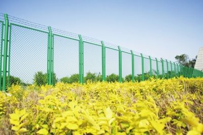 b.隔離柵彎折部分安裝3道鍍鋅鐵絲;