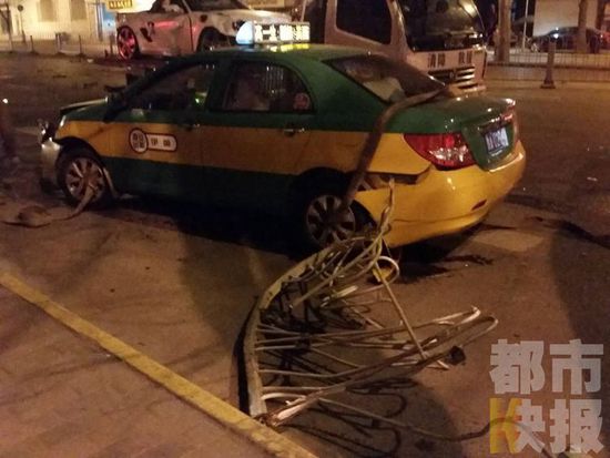 目擊者介紹,當時保時捷撞飛了護欄,徑直撞上了對向開來的出租車。而這鋼鐵護欄又是怎么到了十米開外的路邊道沿上呢?