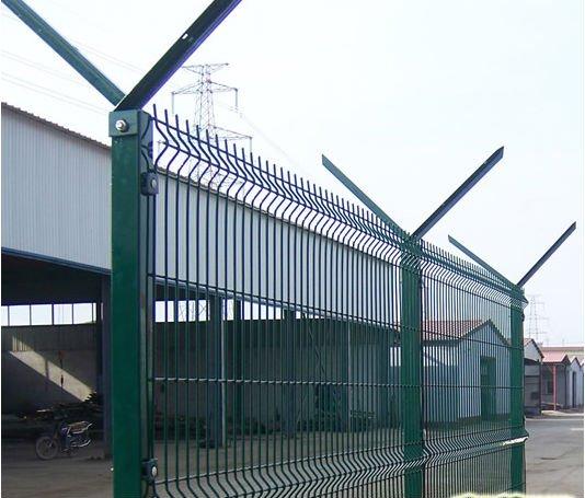 4、光伏網(wǎng)圍欄-Y型護(hù)欄網(wǎng):絲徑4mm、孔徑5*10、5*20、網(wǎng)高1.8-2.2m、網(wǎng)寬3m、立柱6*6方管、60圓管、上方帶V型網(wǎng)片,在上面安裝刀片滾籠。如果您想選購(gòu)的廠區(qū)護(hù)欄網(wǎng)要求防盜防攀爬、結(jié)實(shí)可靠的話,建議您用Y型護(hù)欄網(wǎng),這種護(hù)欄網(wǎng)一般用做飛機(jī)場(chǎng)護(hù)欄網(wǎng)、監(jiān)獄護(hù)欄網(wǎng)。樣式如下圖: